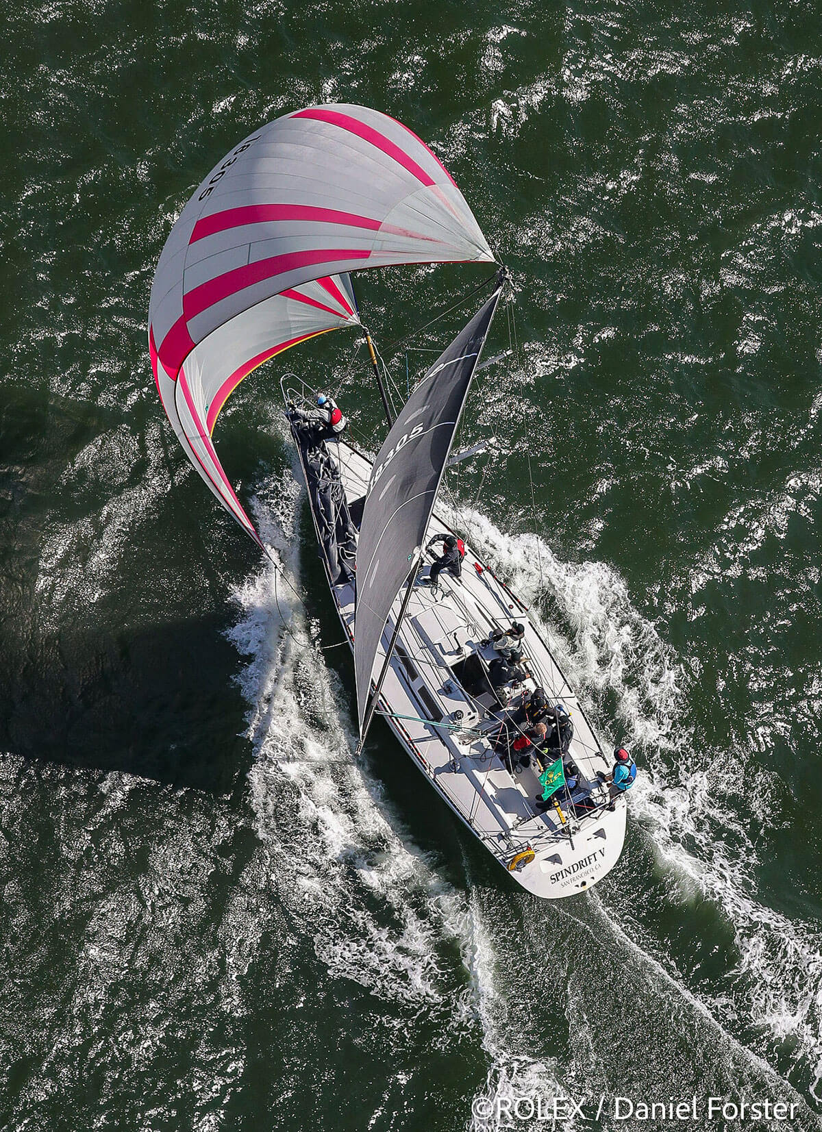 Not Mr. Schwenk, and not Spindrift V. Schwenk instead organized a crew and handed Spindrift V to Bart Hackworth, who is serving as co-skipper and helm while Schwenk continues his recovery ashore.
